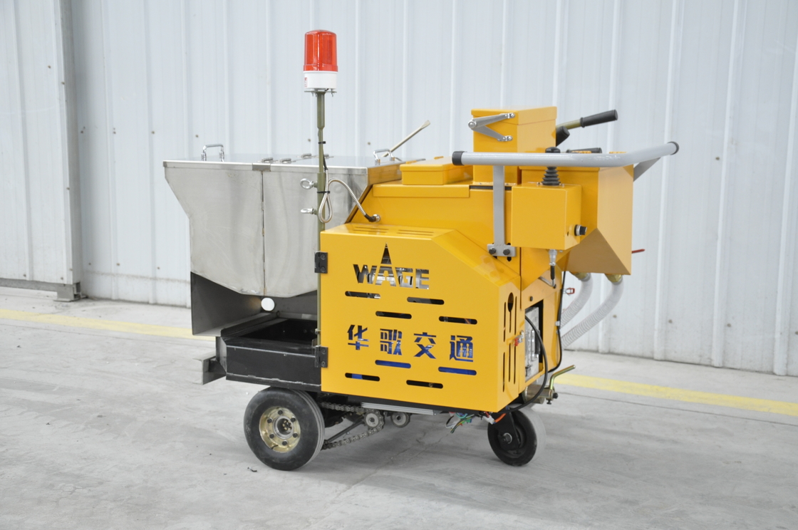 HG-20MM-IIは、2種類のコーティングを同じバレルに分離して入れます。タンクからコーティングを排出後、電動攪拌軸でコーティングを完全に攪拌します。交差ホッパーで混合後、化学反応が行われます。最後に、交差ホッパーを通してマーキングが行われます。スプレー2液マーキングと比較して、スクレープマーキングには次の利点があります:
